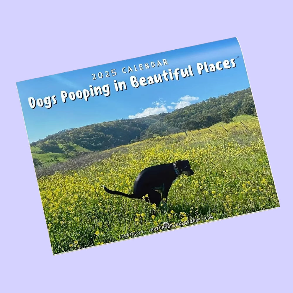The best gift you could ever give is here! 2025 Dogs Pooping in Beautiful Places Calendar is now available!